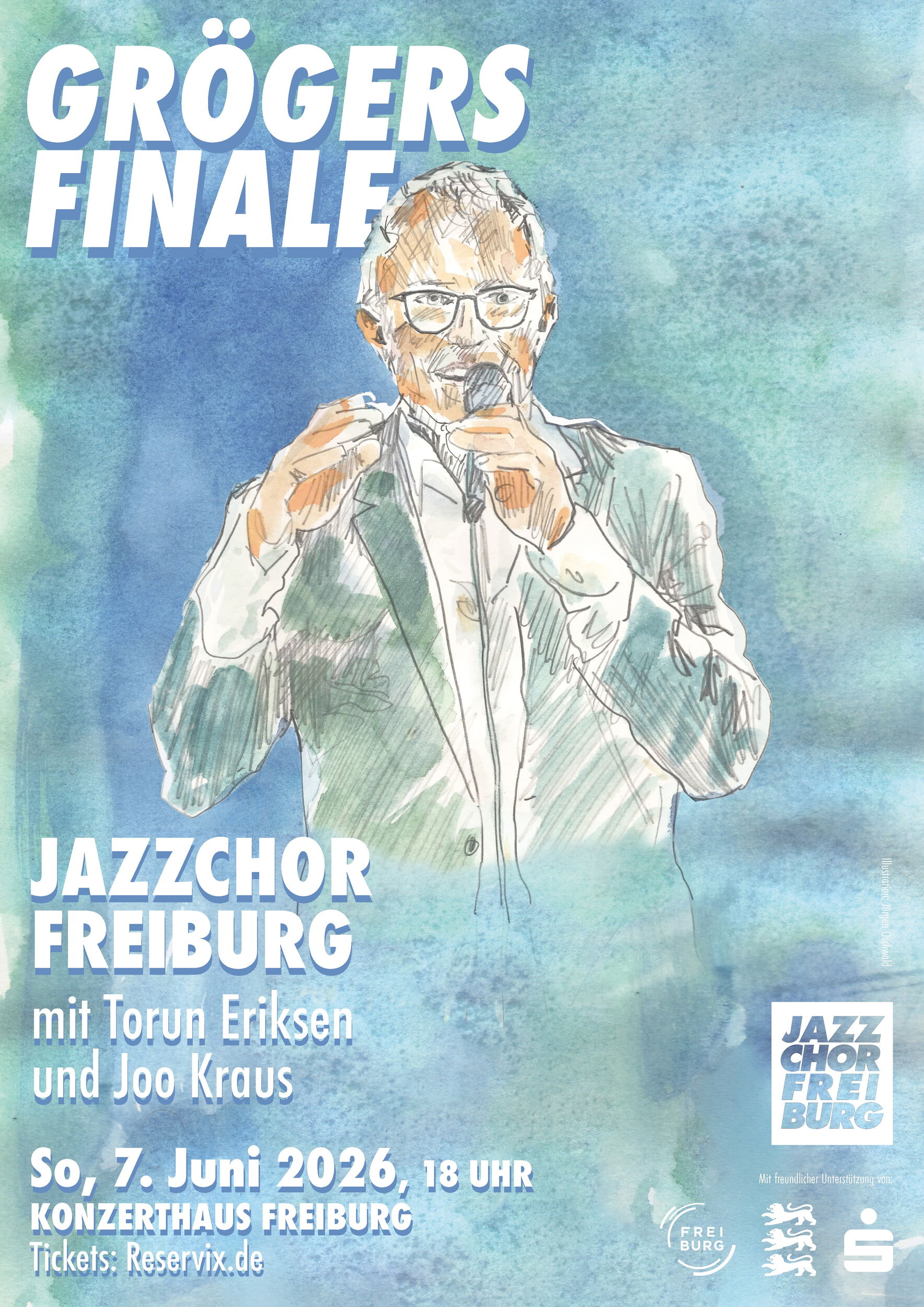 Wer Bertrand kennt, weiß, dass dieses Abschiedskonzert kein gewöhnliches Konzert „von der Stange“ werden wird. Das Programm wird bunt, spannend und ist Grögers Versuch, dann 36 Jahre Jazzchor Freiburg in nur gut drei Stunden (inkl. Pause) musikalisch wiederzugeben! Auf der Bühne werden sein: Der Jazzchor Freiburg, die langjährige Band mit Simone Bollini, Roberto Koch und Michael Heidepriem, die norwegische Sängerin Torun Eriksen, Jazztrompeter Joo Kraus, ein Ehemaligenchor sowie Senior Jazzchor & Junior Jazzchor.