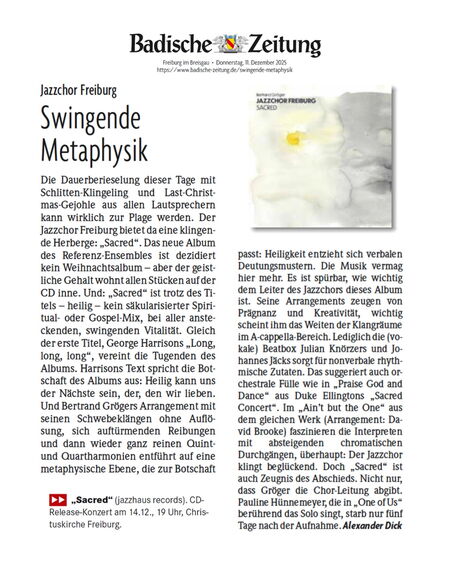 Listen to Jazzchor Freiburgs new song "Gracious" – which will appear on the upcoming album "Sacred" (2025).