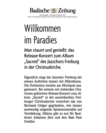 Before that, from March-May 2026, there will be a series of concerts at venues that are particularly dear to Bertrand's heart. The dates and locations will be announced soon on the Jazz Choir website. So there will be many opportunities to say goodbye to Bertrand. Many of us will certainly remain closely connected to him even after his time as artistic director. But even now, we owe him our deepest gratitude and respect for all he has done for the Jazzchor Freiburg.